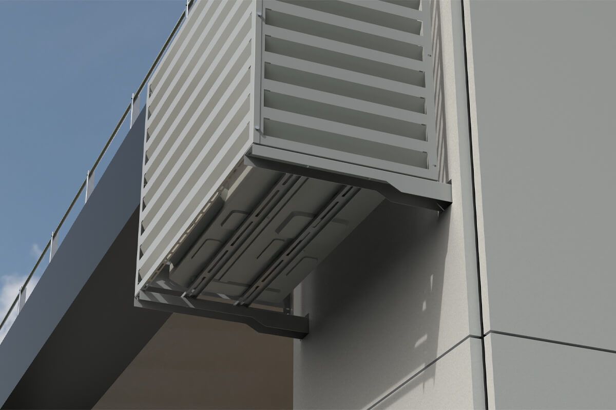 Корзина для кондиционера Fachmann размером 1200х900х600 с перфорацией «Ламели» предназначена для установки на вентилируемый фасад. Она надежно удерживает наружный блок кондиционера, защищая и дополняя внешний вид фасада здания. Благодаря вариативности кронштейна корзина под кондиционер может крепиться на фасад любого типа. Оцинкованный металл и порошковое покрытие обеспечивают коррозионную стойкость корзины и надежность в ее эксплуатации.