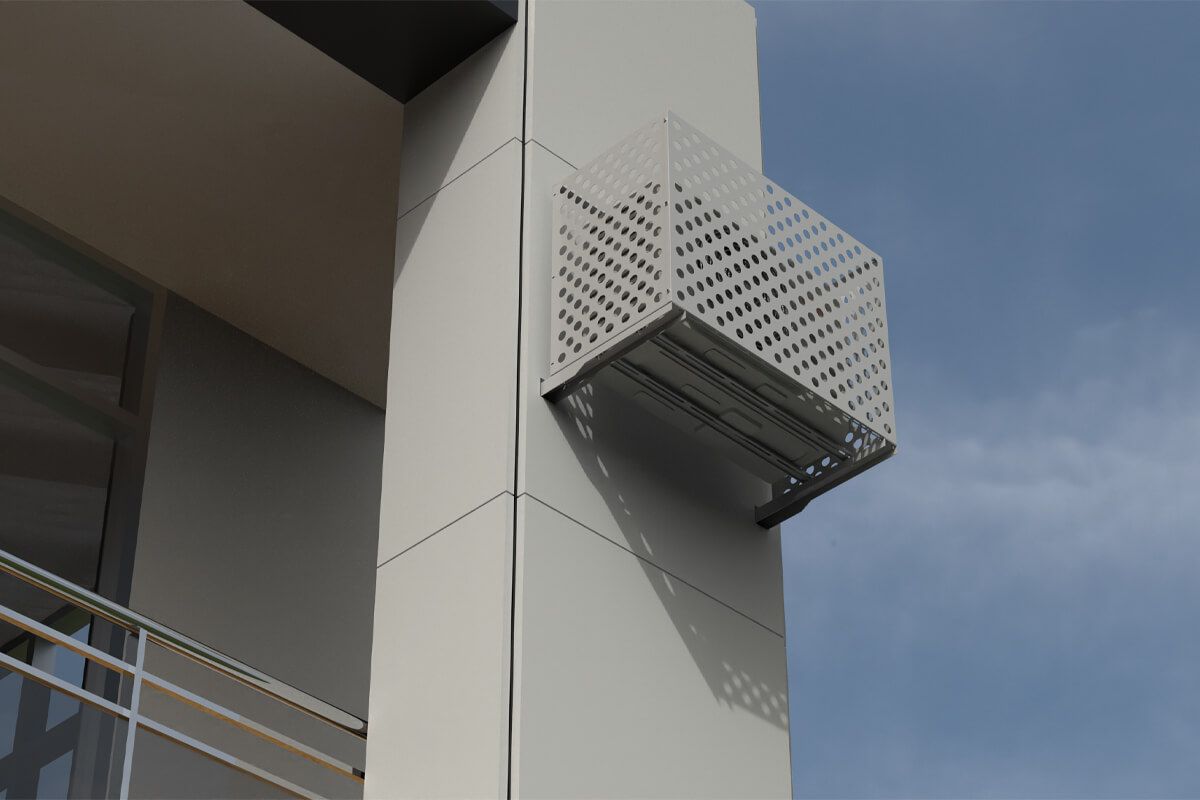 Корзина под кондиционер на фасад имеет сборно-разборную конструкцию, которая обеспечивает простую и быструю установку, а также облегчает обслуживание, экономя время и деньги.