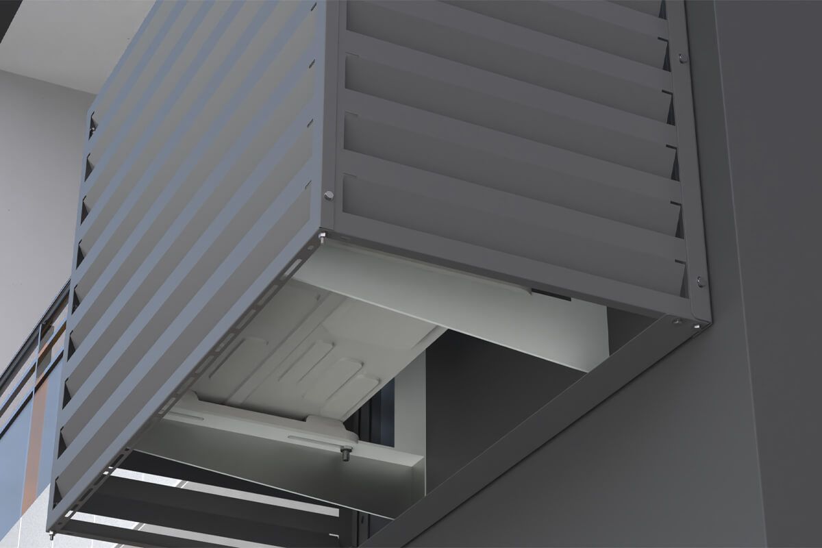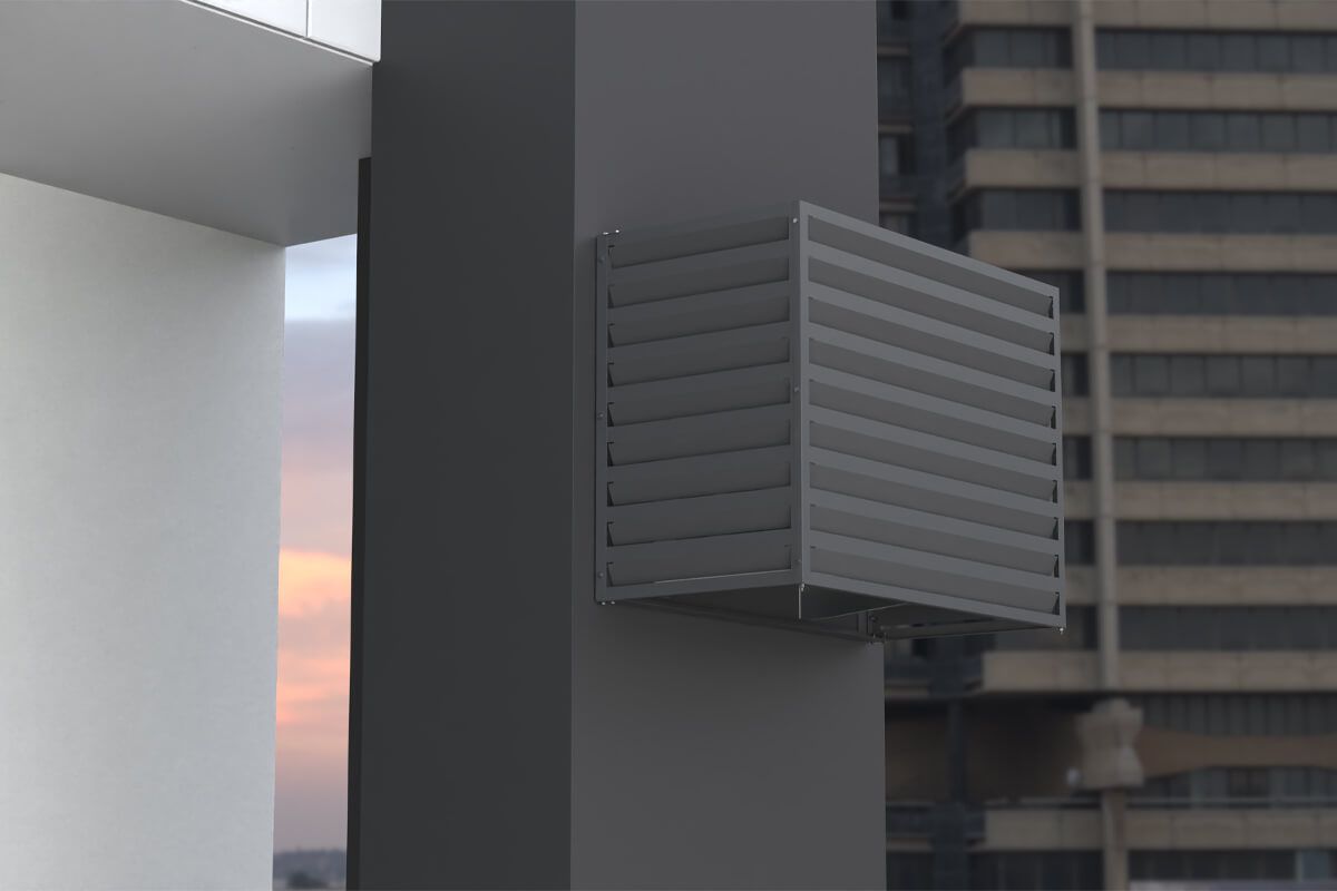 Панели для кондиционера Fachmann размером 1300х1050х650 с перфорацией «Ламели» надежно защищают наружный блок кондиционера и дополняют внешний вид фасада здания. Панели для внешнего блока кондиционера выполнены из оцинкованной стали и защищены атмосферостойким порошковым покрытием. Панели для кондиционера на фасад имеют сборно-разборную конструкцию, что позволяет легко монтировать и обслуживать наружный блок.