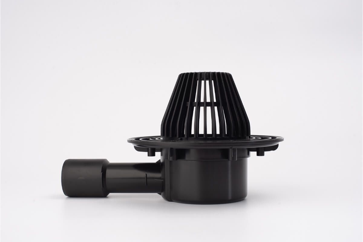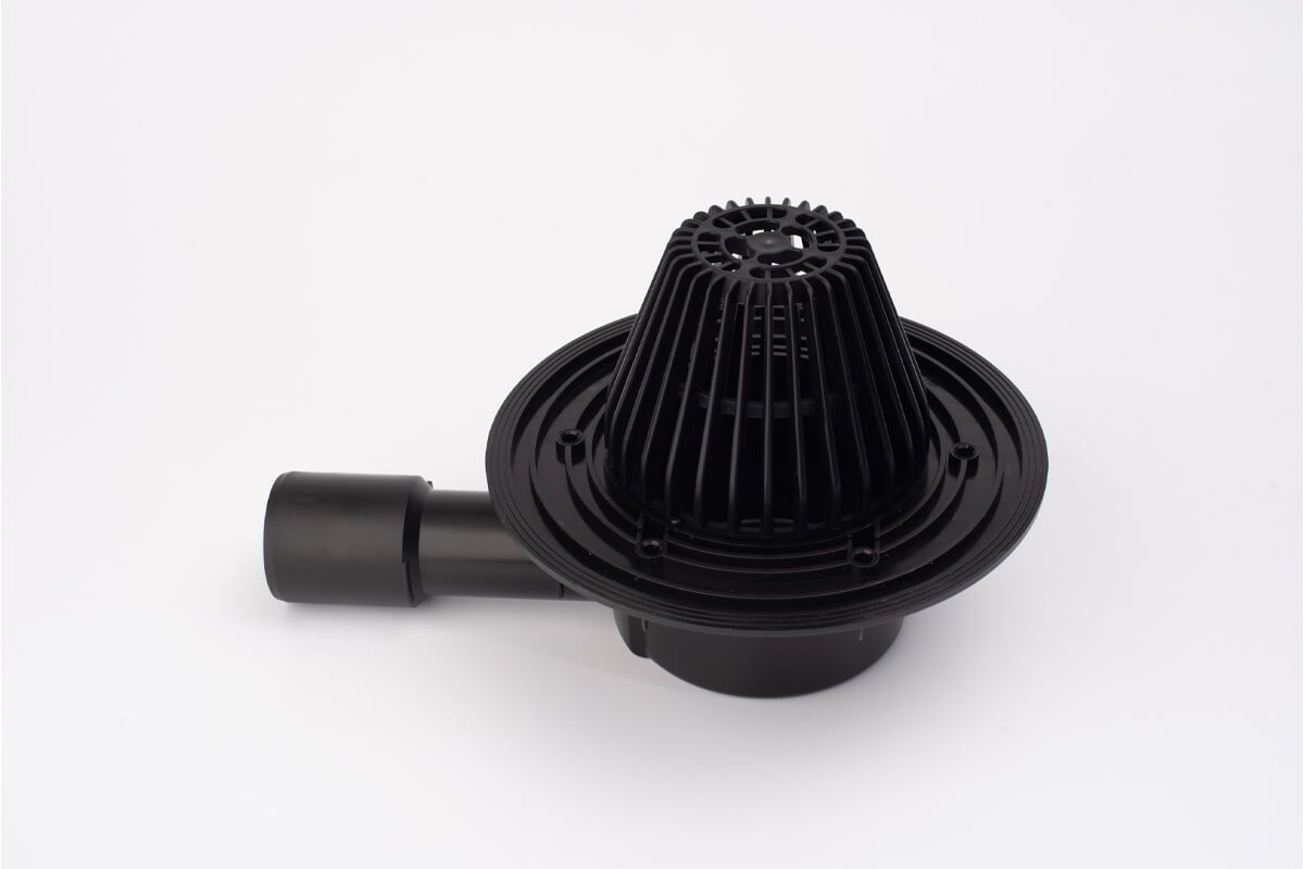 Воронка кровельная с горизонтальным выпуском VB 090.0 Y подходит для неэксплуатируемых плоских крыш, балконов, террас и карпортов площадью до 23 м².
