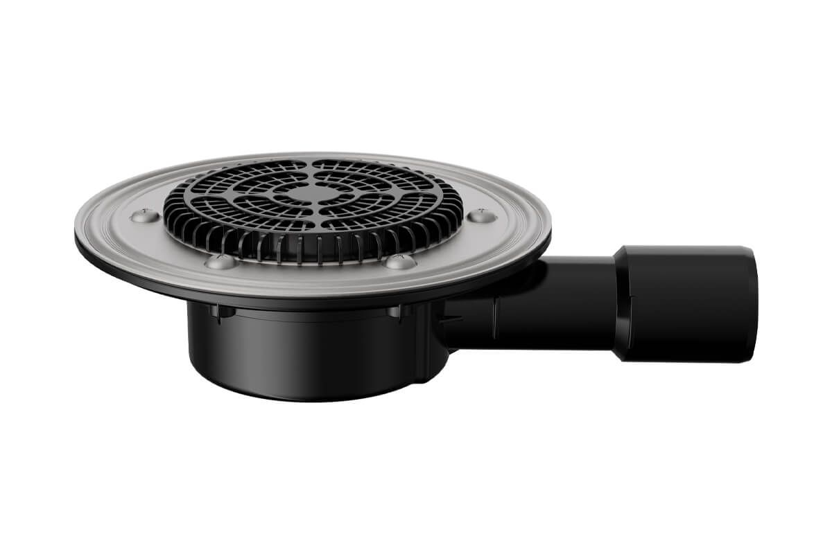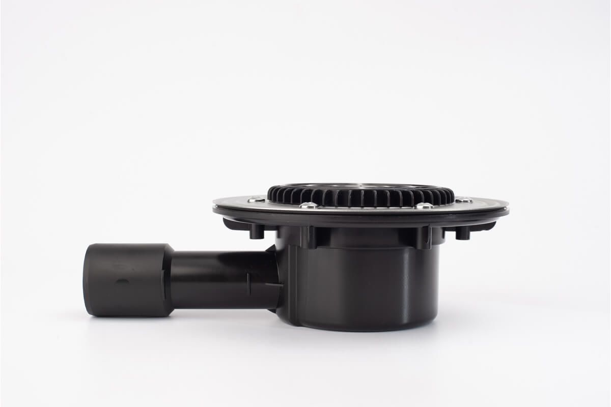 Воронка кровельная с горизонтальным выпуском VB 090.1 F подходит для эксплуатируемых плоских крыш, балконов и террас площадью до 23 м².