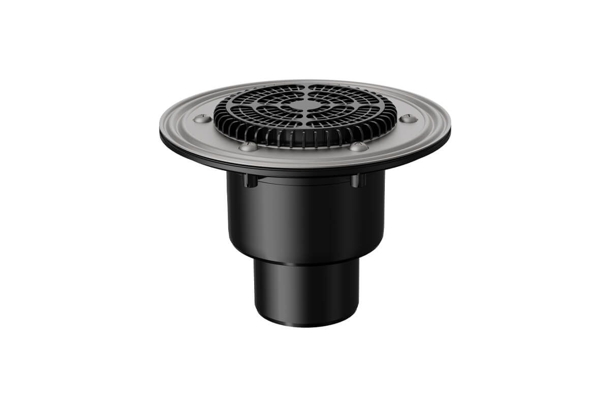 Воронка кровельная с вертикальным выпуском VB 310.1 F подходит для эксплуатируемых плоских крыш, балконов и террас площадью до 55 м².