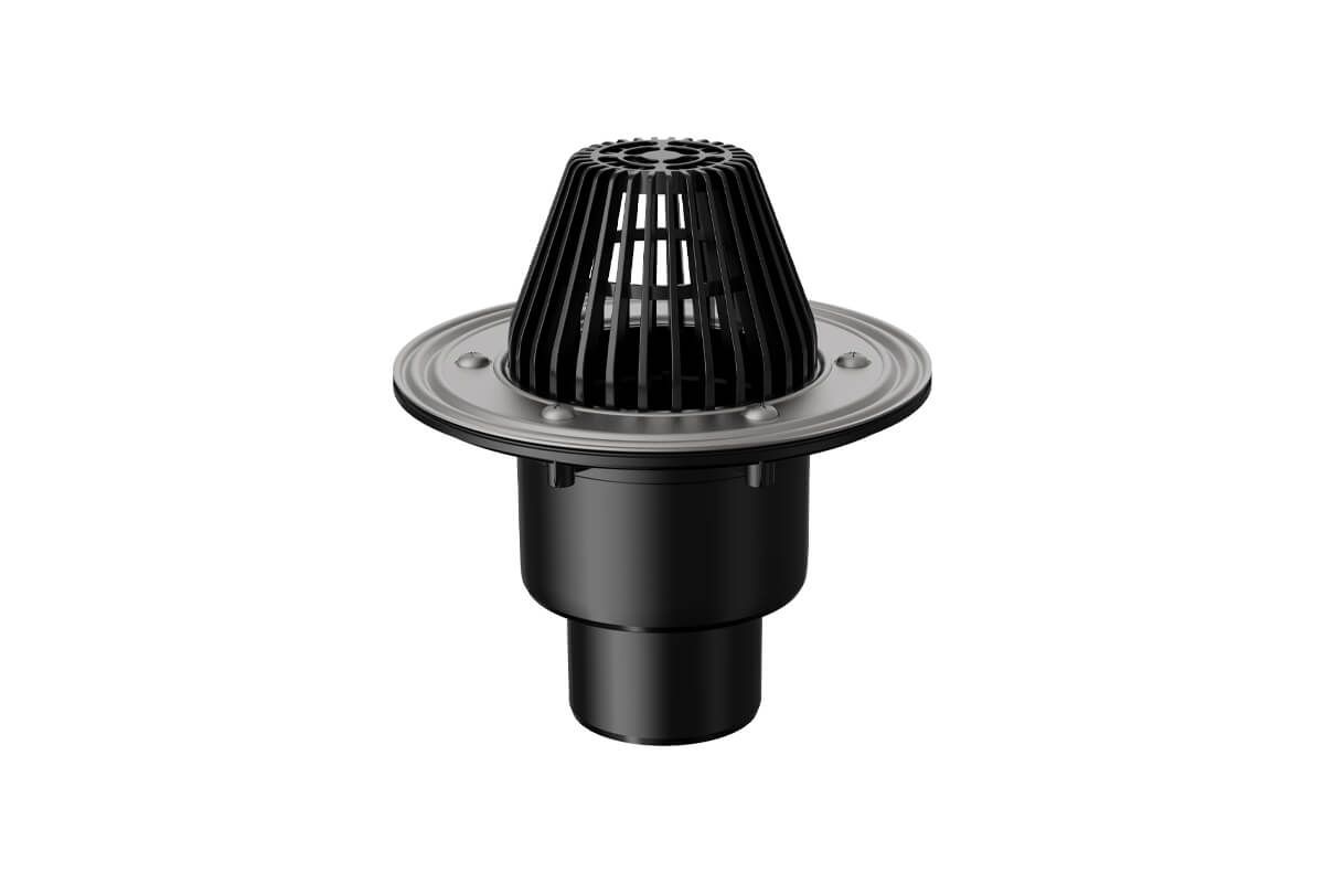Воронка кровельная с вертикальным выпуском VB 310.1 Y подходит для неэксплуатируемых плоских крыш, балконов, террас и карпортов площадью до 55 м².