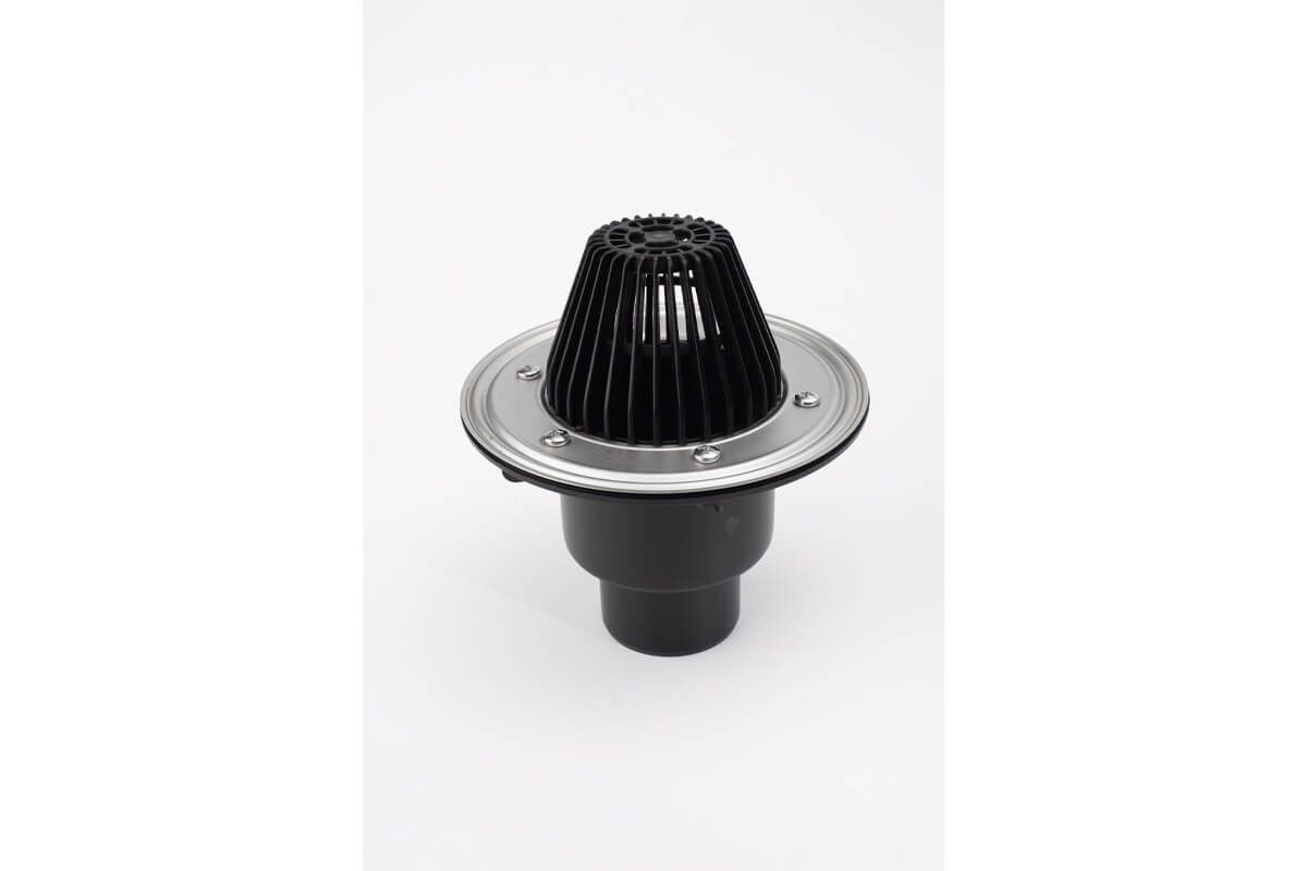 Специализированная компактная воронка Fachmann имеет малое поперечное сечение и большую пропускную способность. Благодаря этому воронка для плоских крыш эффективно отводит воду с кровли во внутренний водосток ливневой канализации и при этом не портит эстетику внешнего вида объекта. Нержавеющий металлический фланец облегчает монтаж и обеспечивает надежную фиксацию воронки.