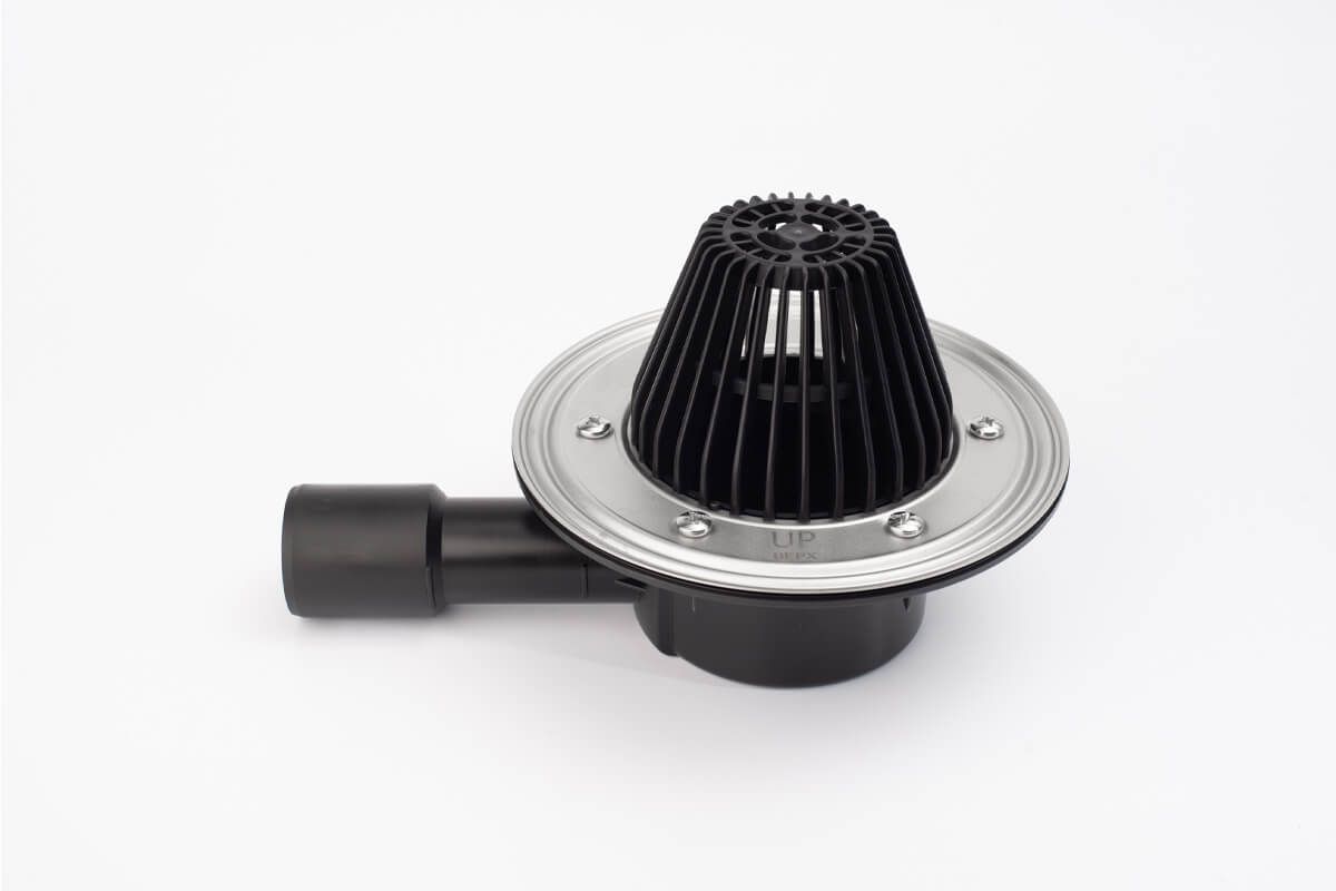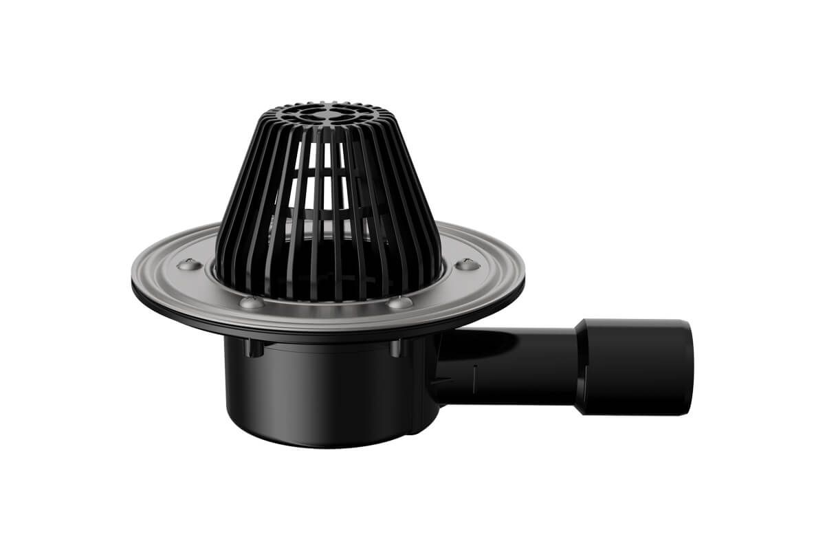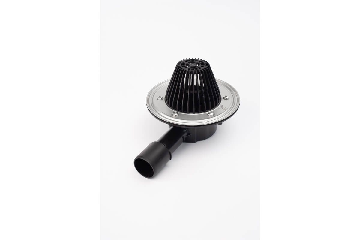 Воронка кровельная с горизонтальным выпуском VB 510.1 Y подходит для эксплуатируемых плоских крыш, балконов и террас площадью до 23 м².