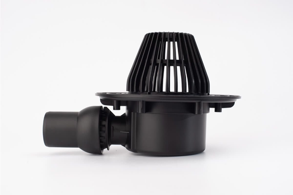 Горизонтальная кровельная воронка с регулируемым углом выпуска VB 520.0 Y подходит для эксплуатируемых плоских крыш, балконов и террас площадью до 23 м².