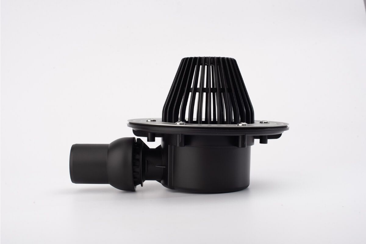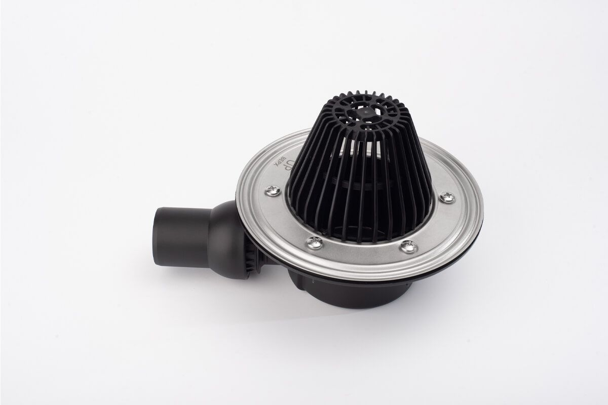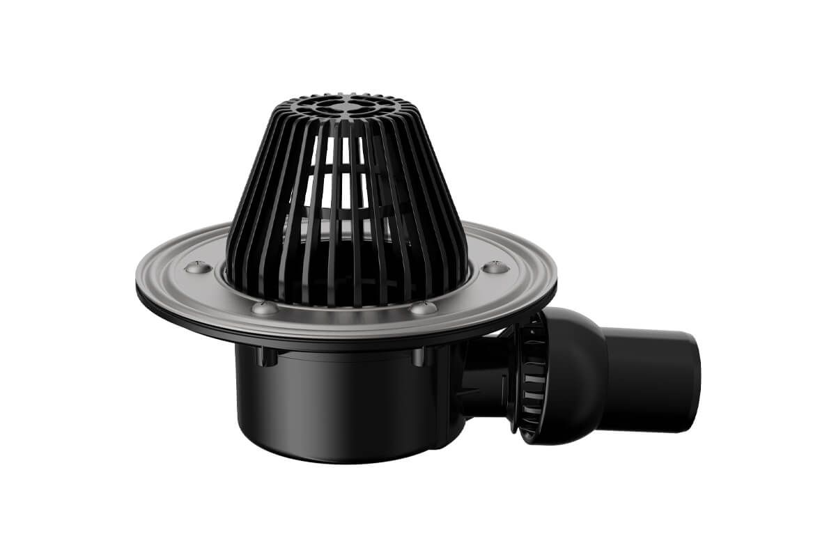 Воронка кровельная с горизонтальным выпуском VB 520.1 Y подходит для эксплуатируемых плоских крыш, балконов и террас площадью до 23 м².