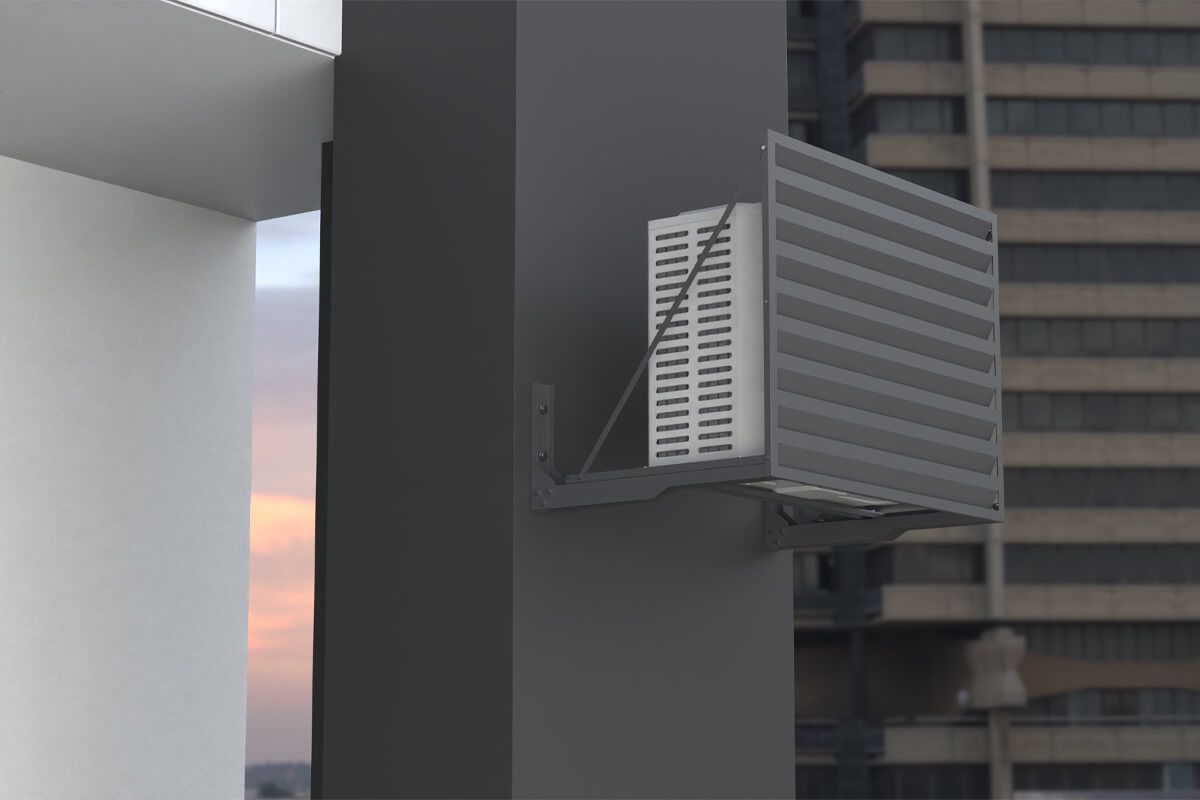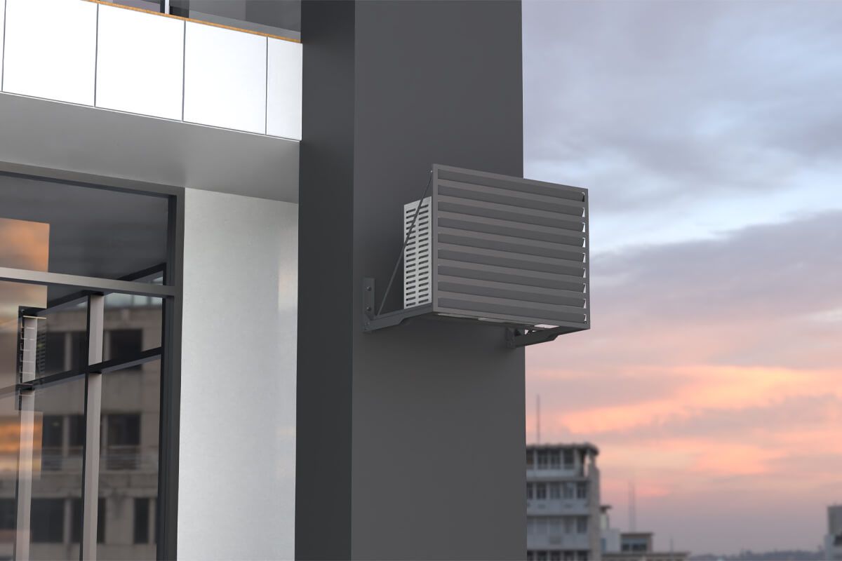 Экран для кондиционера Fachmann размером 1000х700х550 с перфорацией «Ламели» предназначен для установки на вентилируемый фасад. Он надежно удерживает наружный блок кондиционера, защищая и дополняя внешний вид фасада здания. Кронштейн крепления экрана изготавливается из оцинкованной стали, дополнительно защищается атмосферостойким порошковым покрытием. Кронштейн может быть выполнен под любой тип фасада.