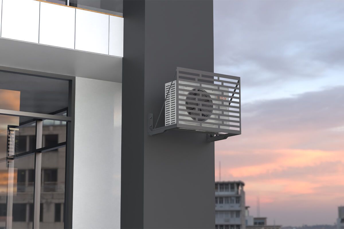 Экран для кондиционера Fachmann размером 1000х700х550 с перфорацией «Точка-Тире» предназначен для установки на кирпичный фасад, мокрый фасад или фасад без утепления. Он надежно удерживает наружный блок кондиционера, защищая и дополняя внешний вид фасада здания. Кронштейн крепления экрана изготавливается из оцинкованной стали, дополнительно защищается атмосферостойким порошковым покрытием. Кронштейн может быть выполнен под любой тип фасада.
