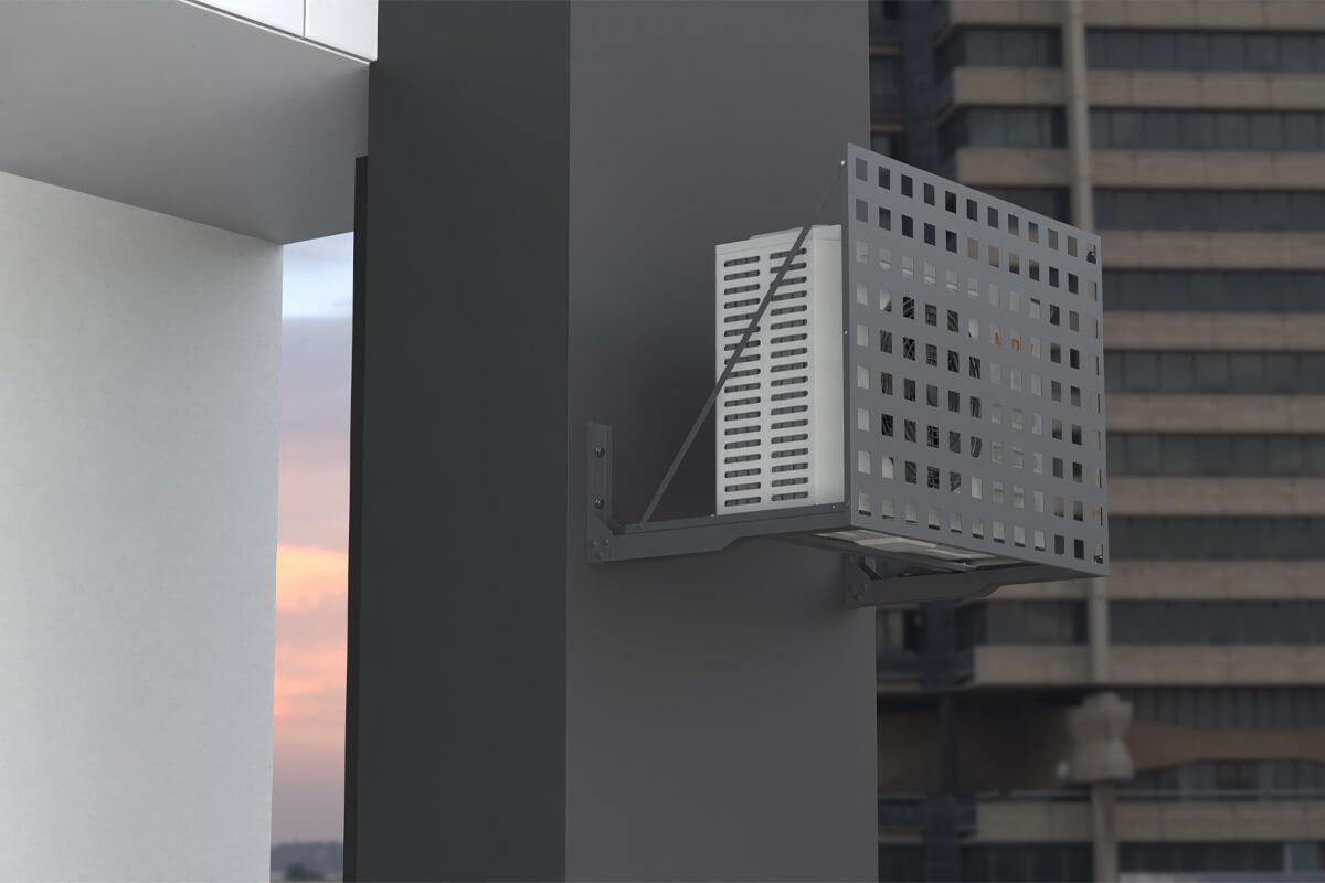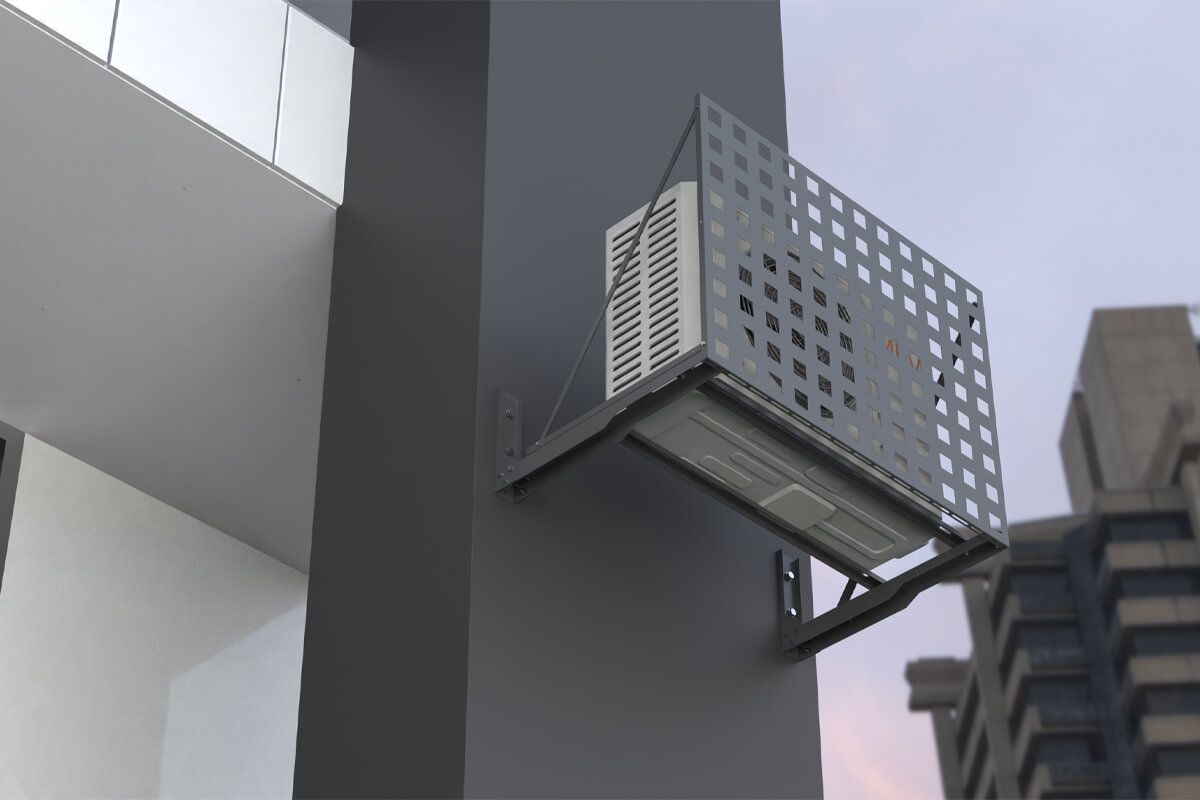 Экран для кондиционера Fachmann размером 1200х900х600 с перфорацией «Квадрат» предназначен для установки на кирпичный фасад, мокрый фасад или фасад без утепления. Он надежно удерживает наружный блок кондиционера, защищая и дополняя внешний вид фасада здания. Кронштейн крепления экрана изготавливается из оцинкованной стали, дополнительно защищается атмосферостойким порошковым покрытием. Кронштейн может быть выполнен под любой тип фасада.