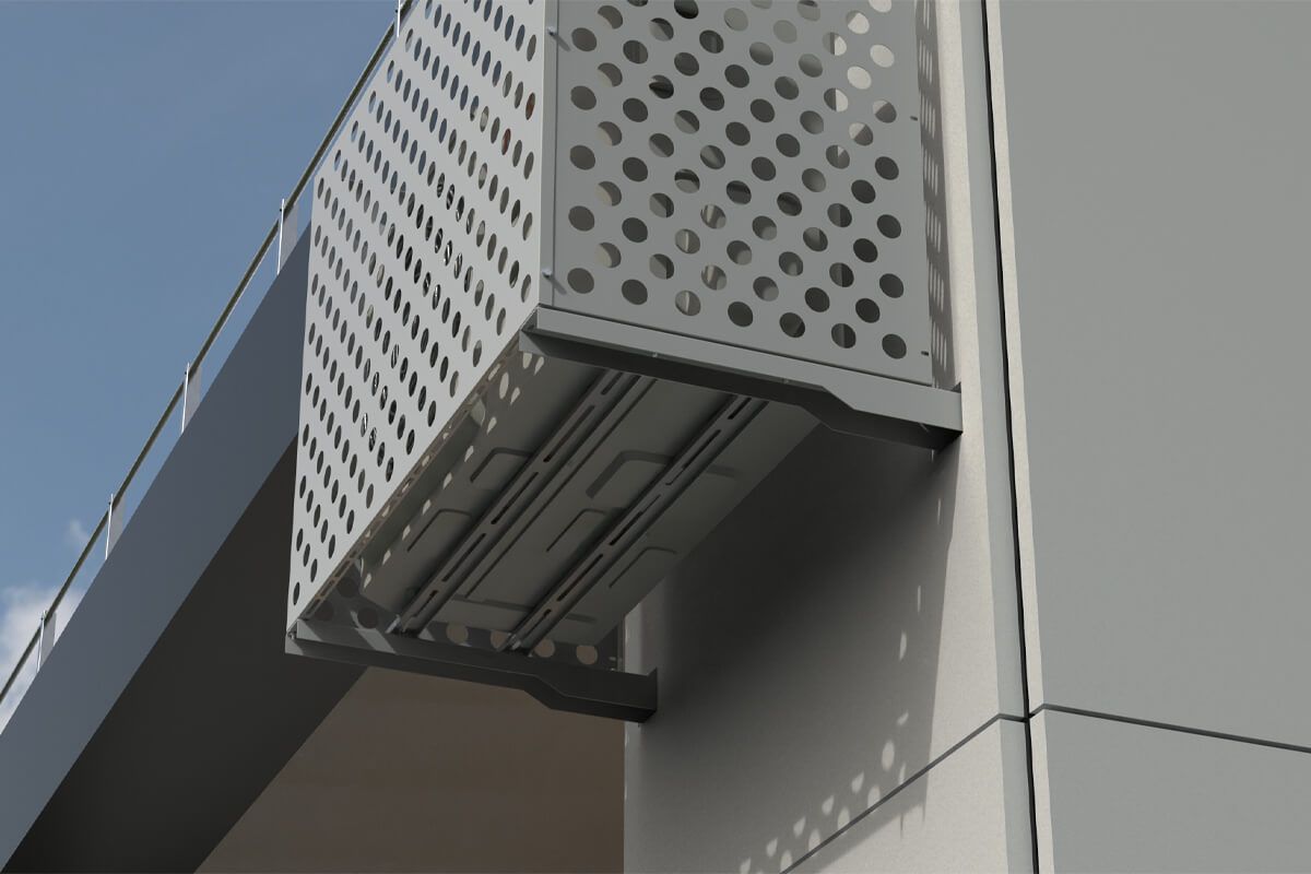 Корзина под кондиционер на фасад имеет сборно-разборную конструкцию, которая обеспечивает простую и быструю установку, а также облегчает обслуживание, экономя время и деньги.